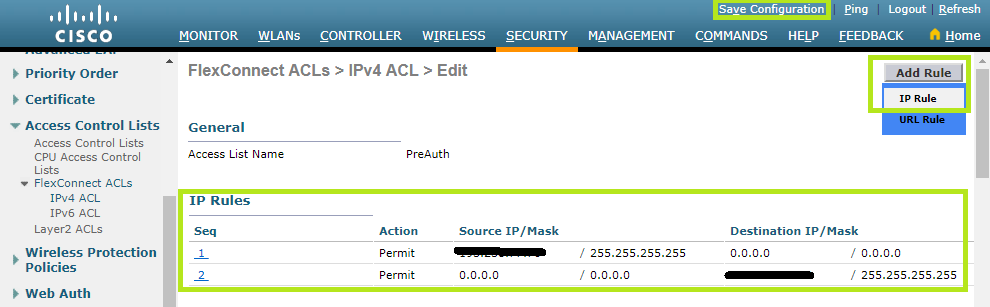 Click FlexConnect ACLs on the left and then scroll down to IPv4 ACL.