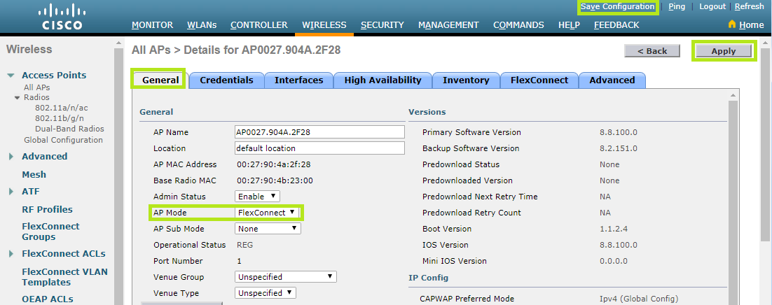 Starting from the General tab, select FlexConnect in the AP Mode field.