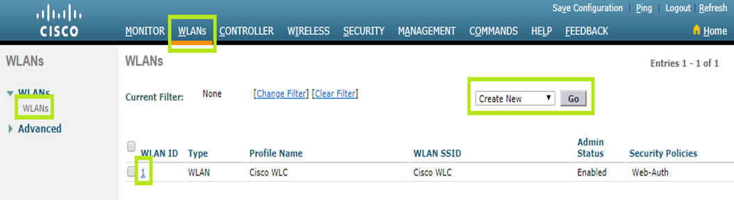 To configure WLANs, two options are available: